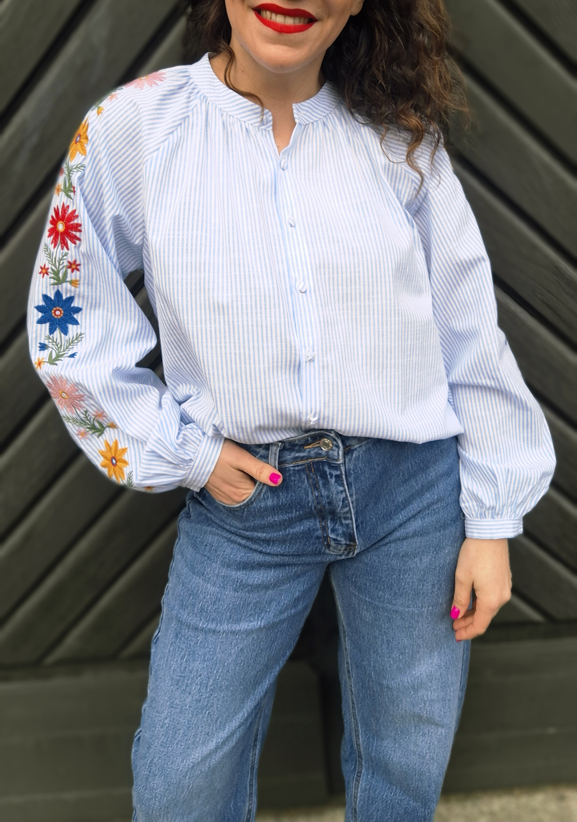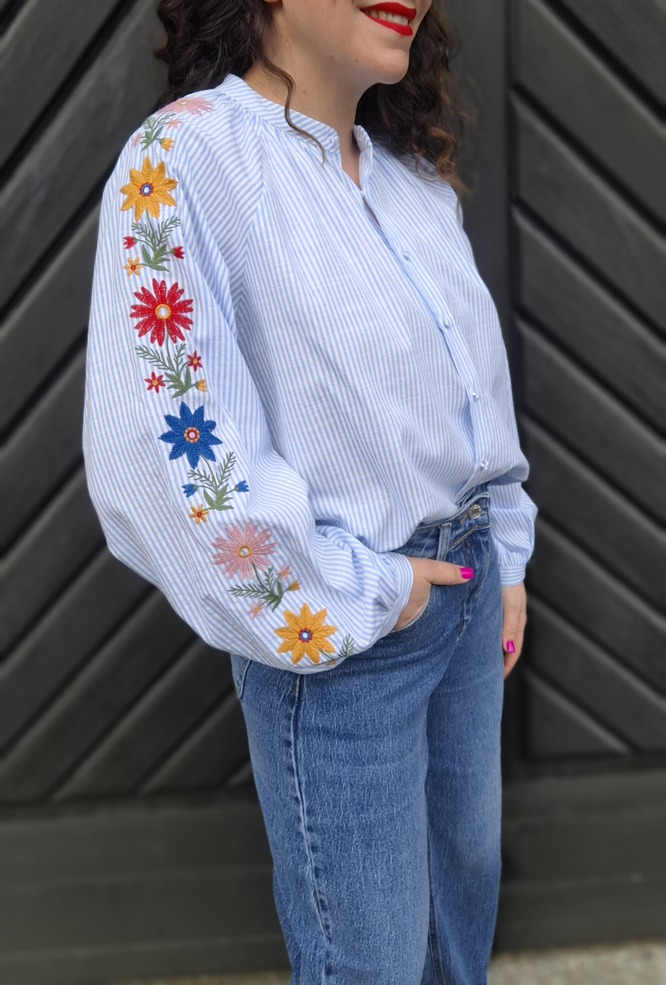 Broderies le long de la manches
