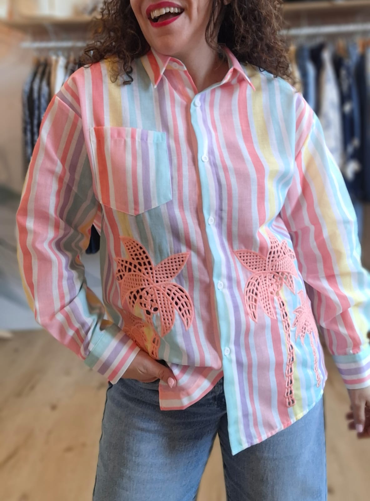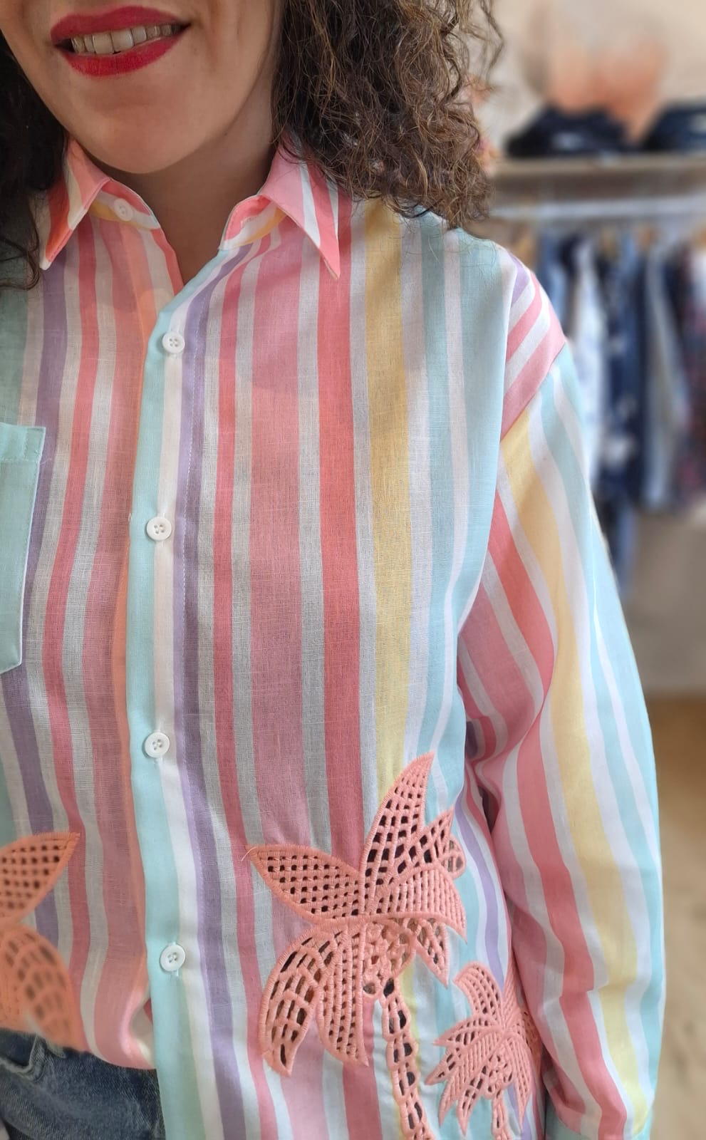 - Broderie palmier roses sur l’avant