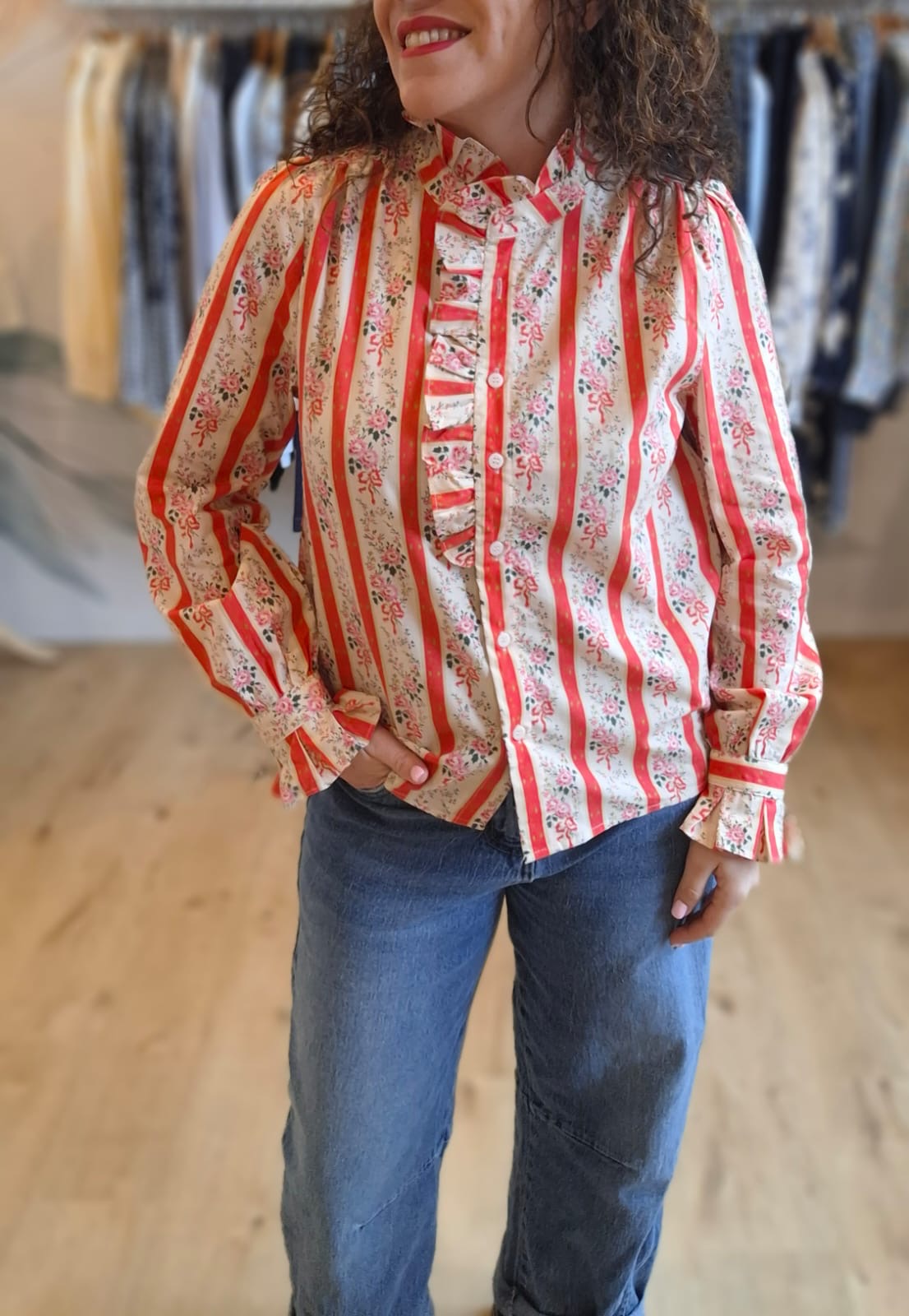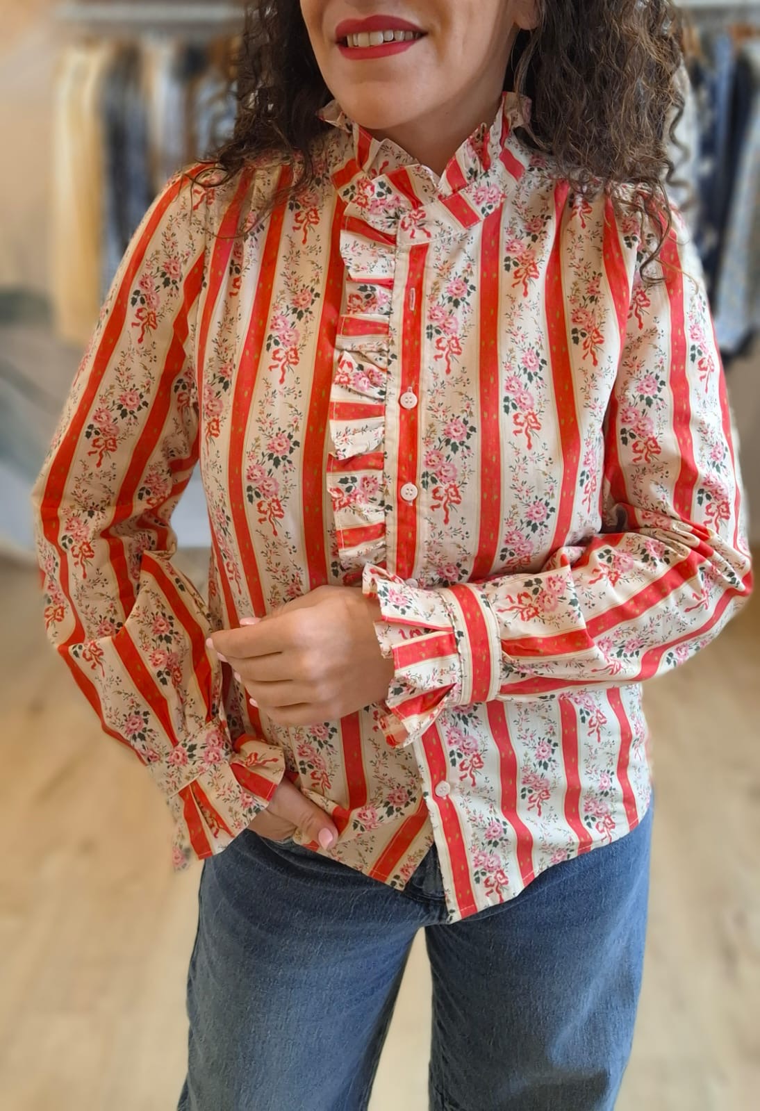 - Couleurs : rayures rouges , écru & imprimé fleuri