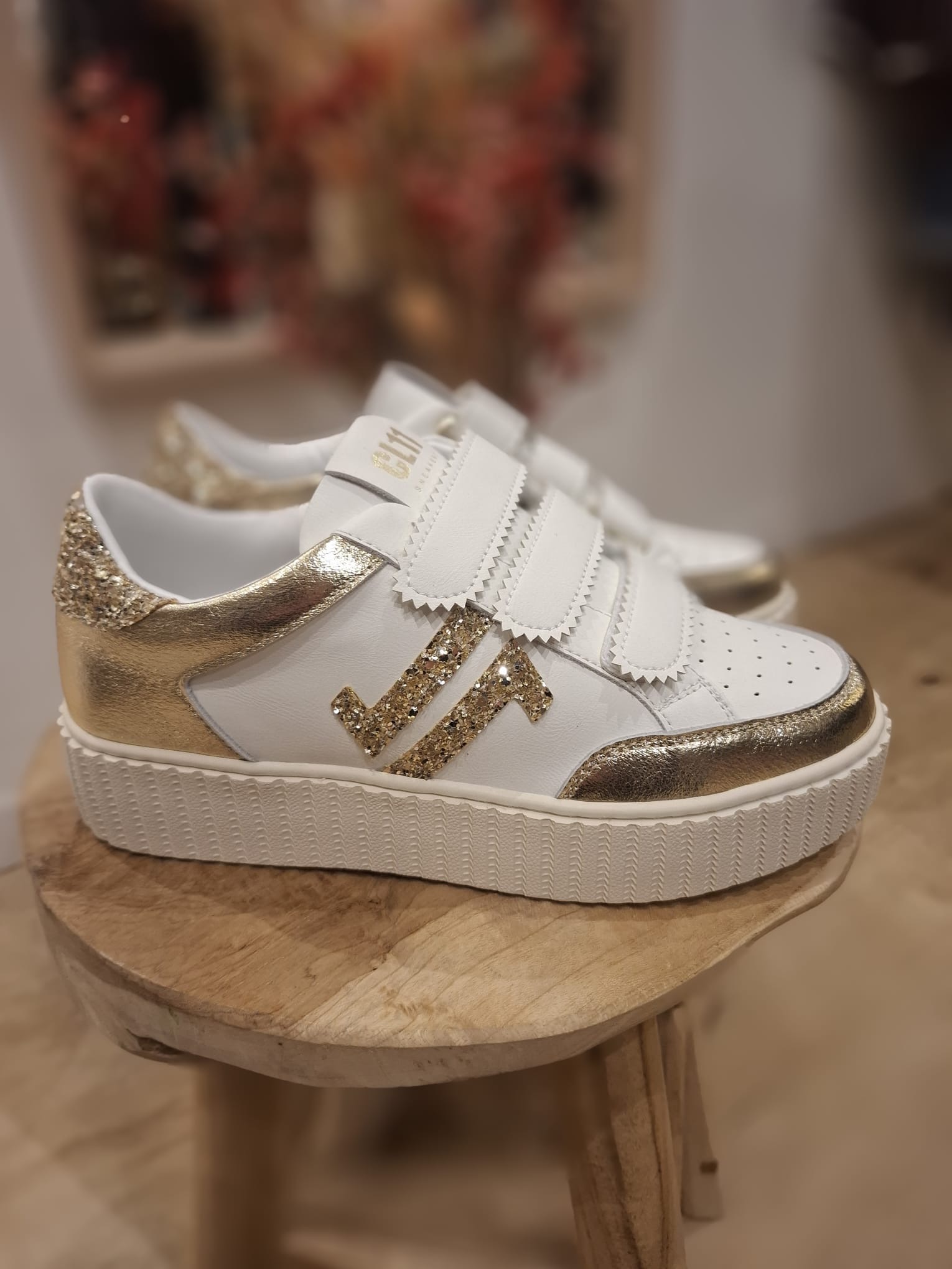 - Couleurs : blanc & doré effet métallique