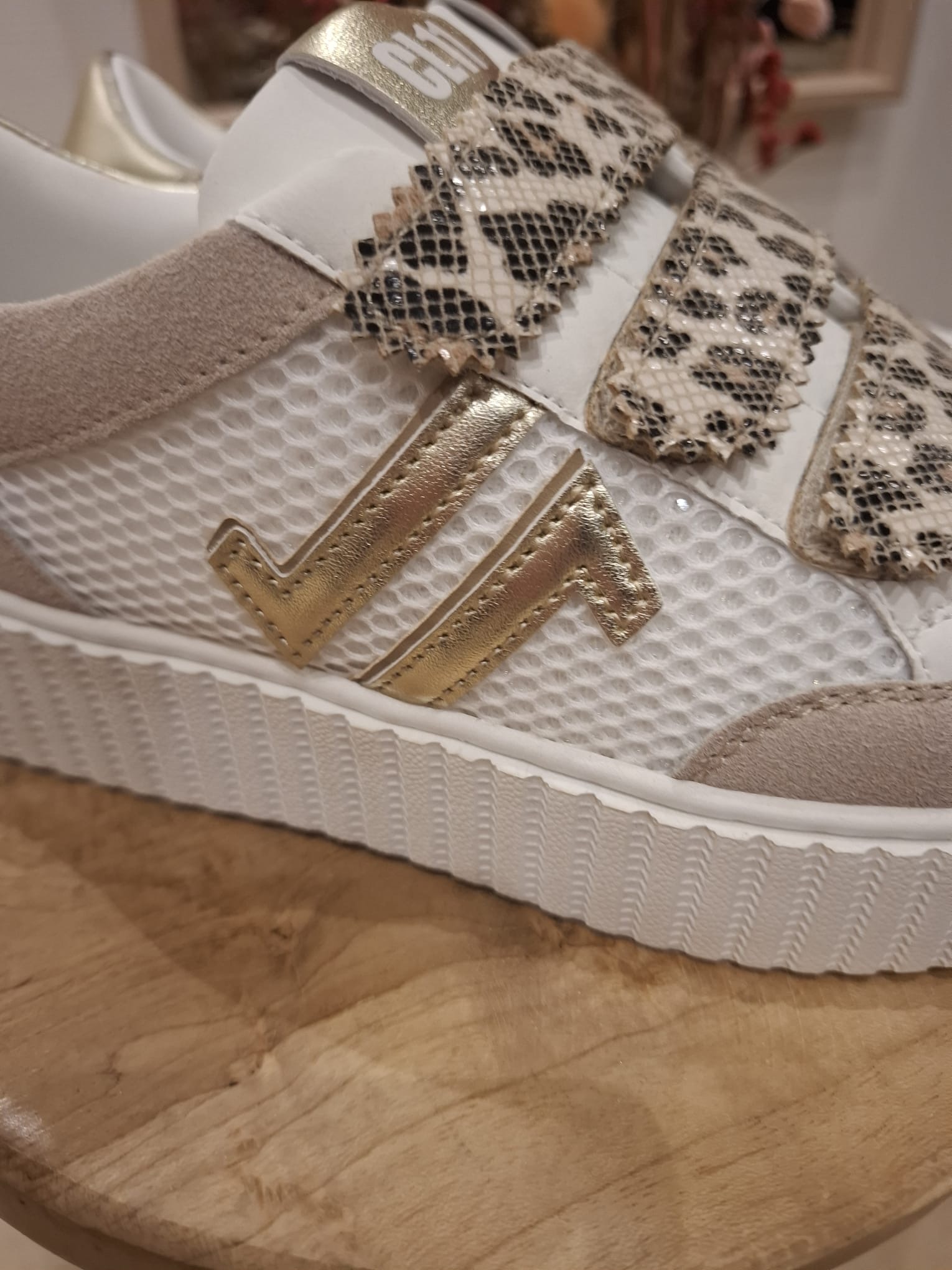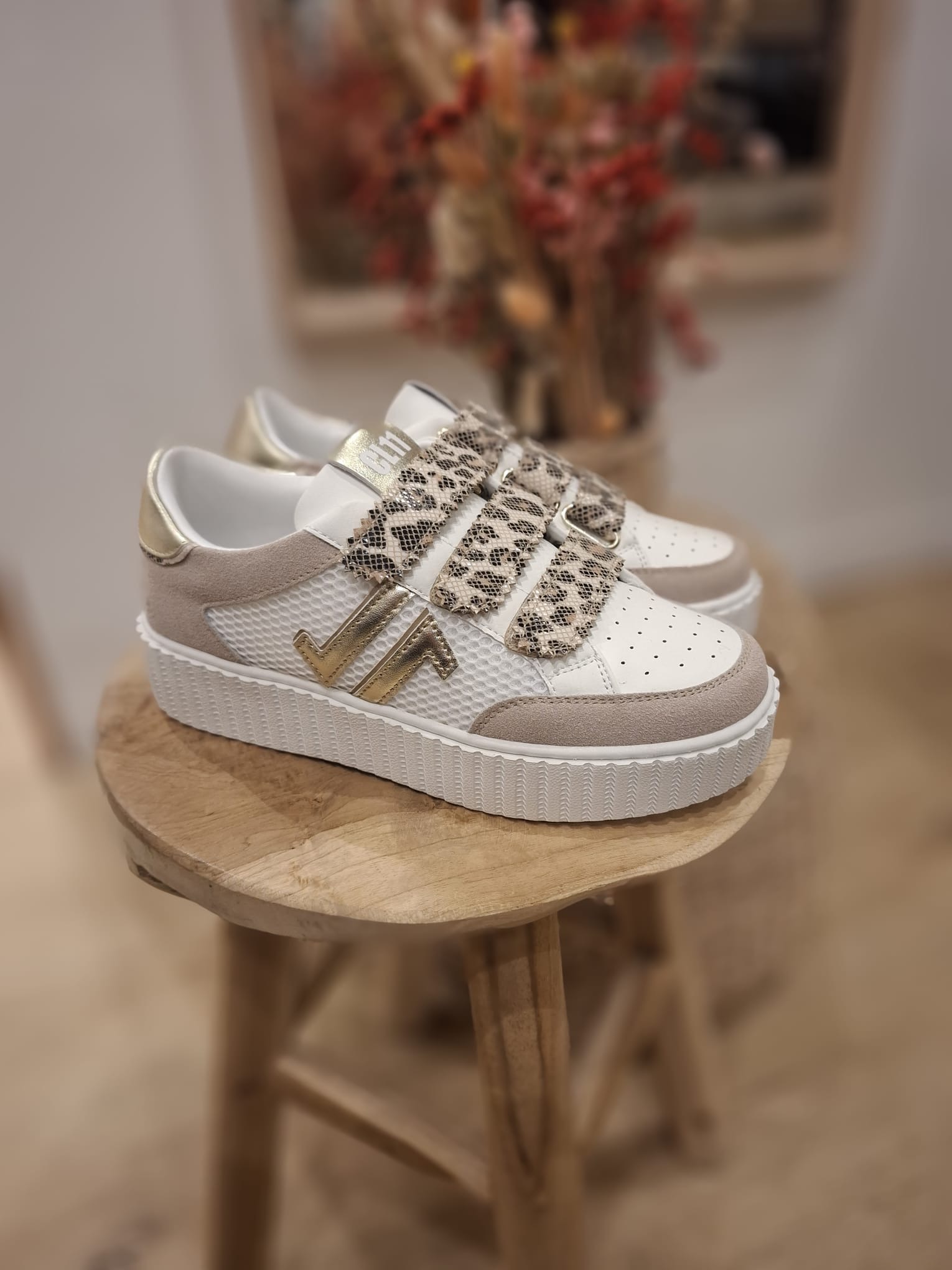 - Languette arrière doré et liseré léopard