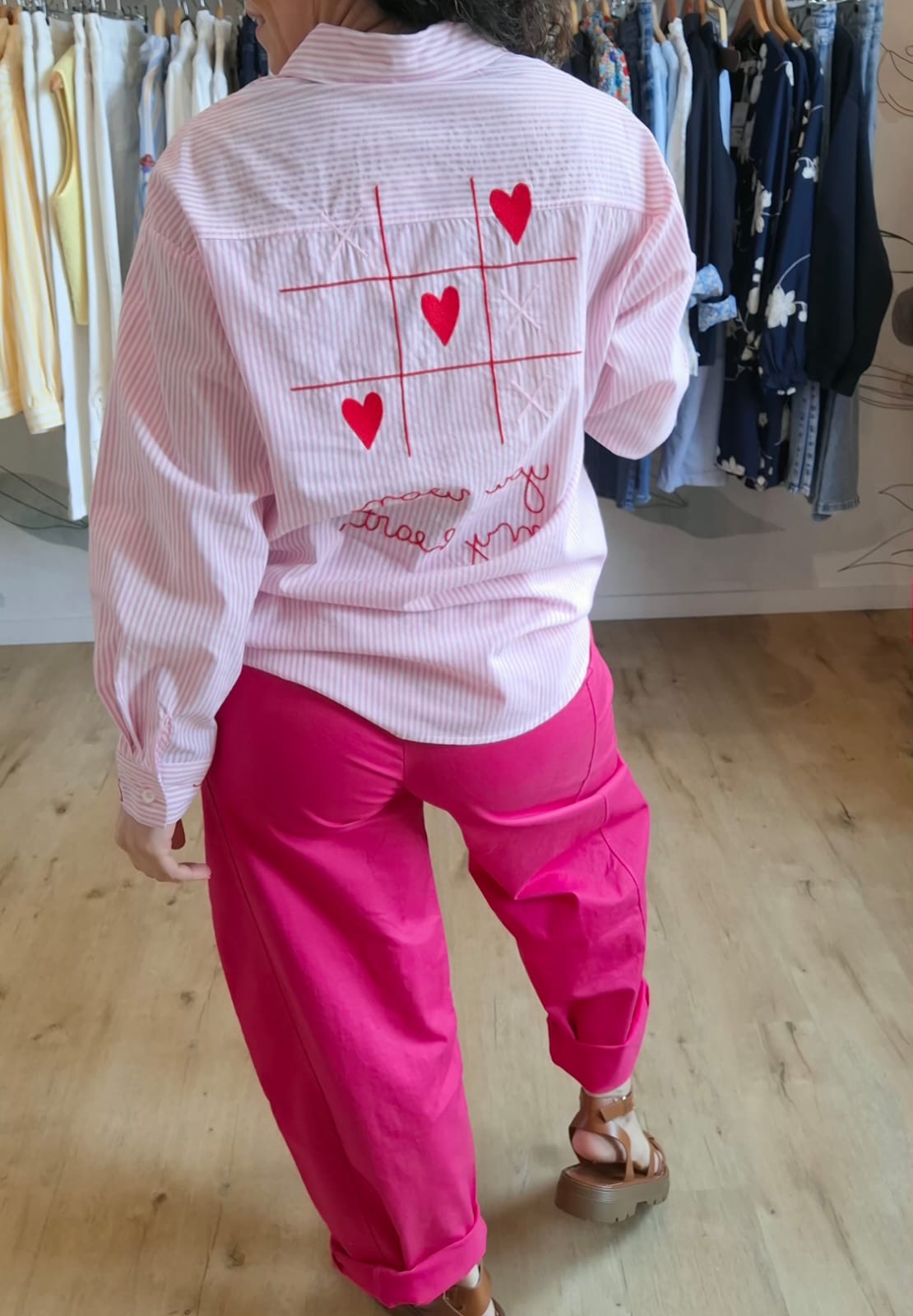 - Chemise coupe droite rayée rose