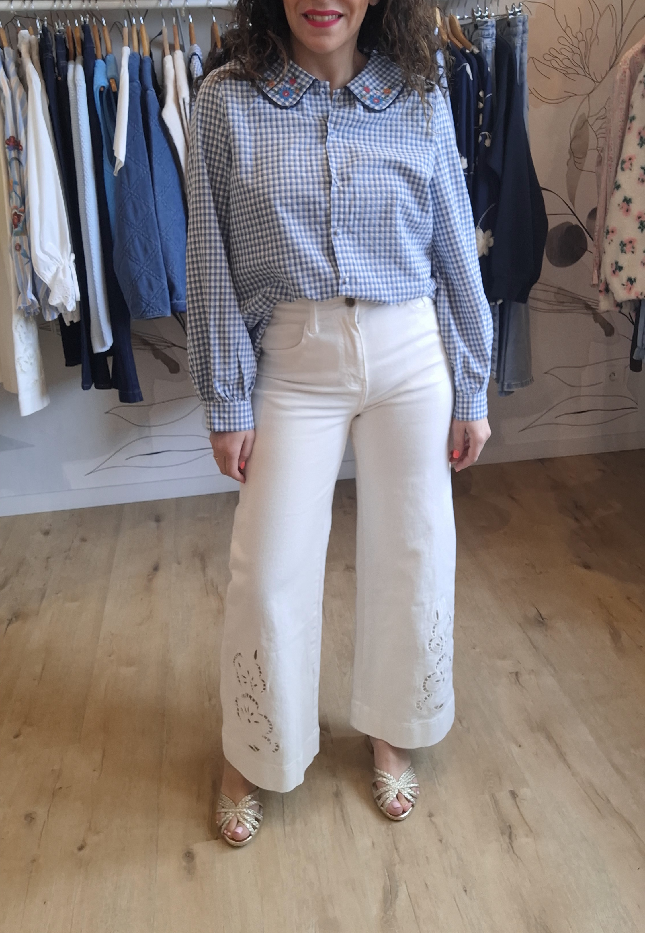 - Broderies fleuries au niveau du col